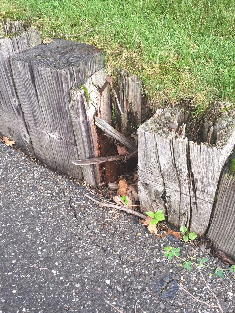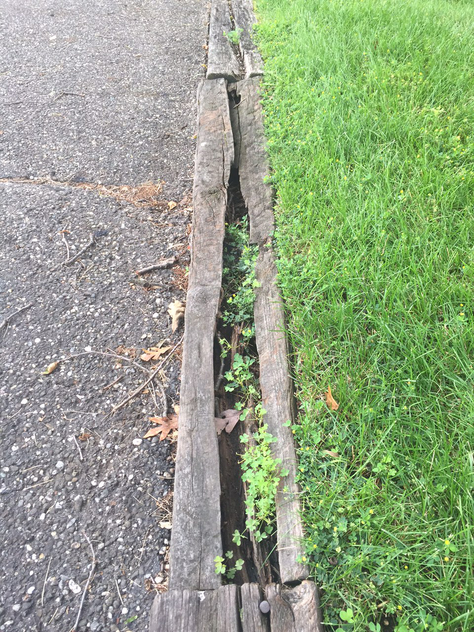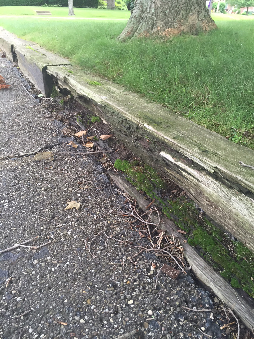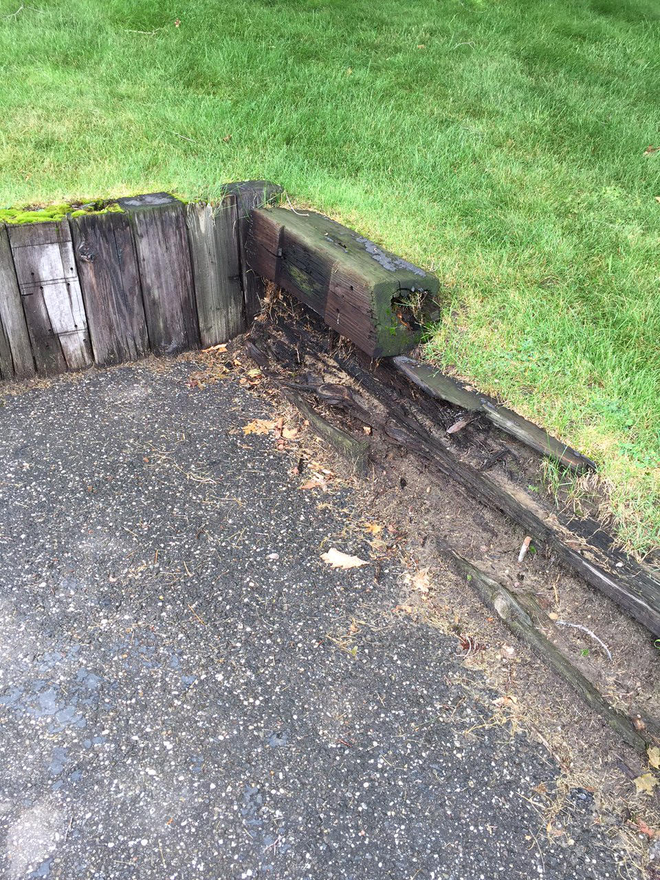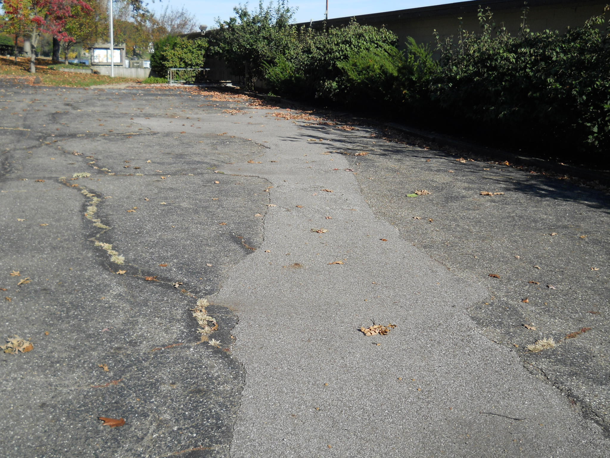 - Parking lot - blacktop not properly installed 50 yrs ago, damaged,